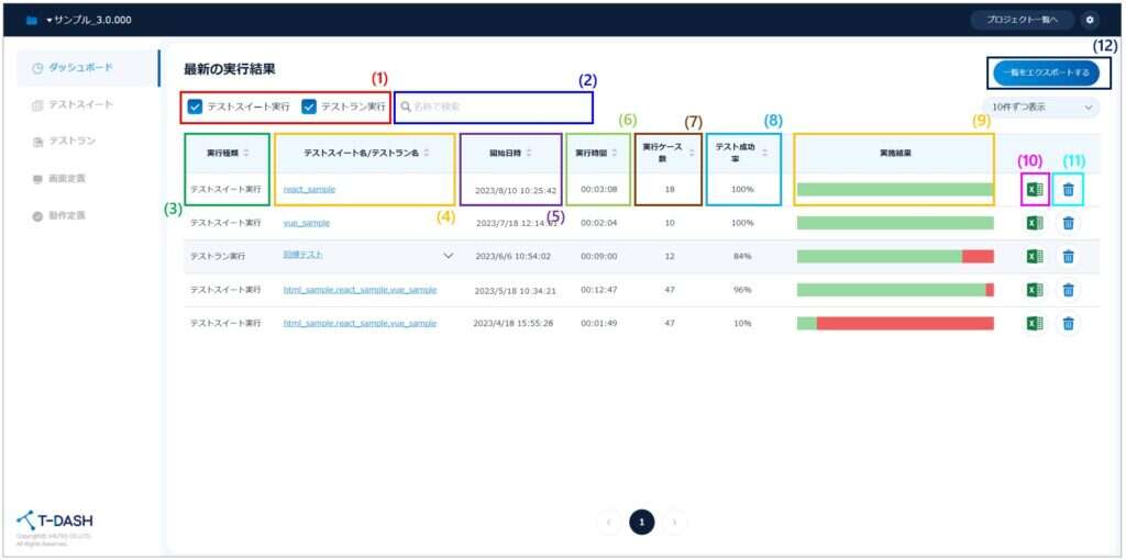 T-DASHの画面上でテストの実行・結果判定も可能です。