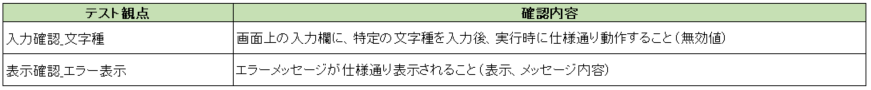 必要に応じて、各確認内容に「テストパラメータ」項目を挿入して、テストする条件や入力値を記入します。