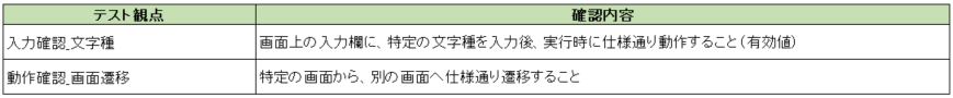 続いて、各観点の確認内容を、機能動作確認一覧を基に具体化します。