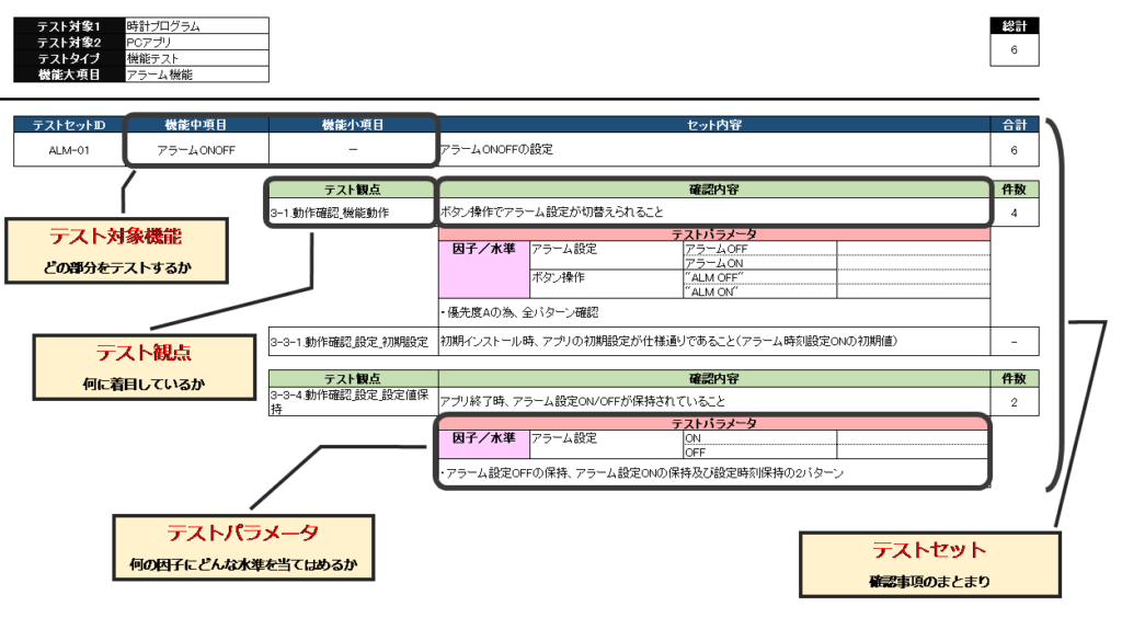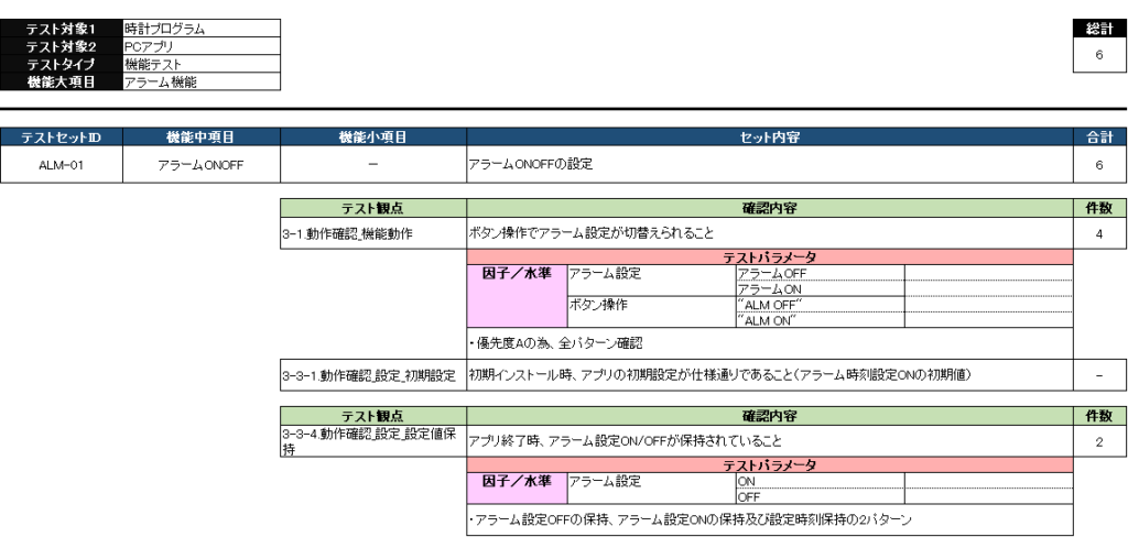 それでは、このような効果を持つテスト明細を実際に作成してみましょう。